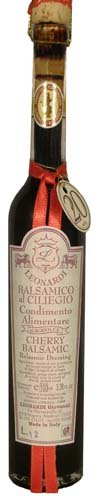 This special, 20 year-old vinegar is aged solely in cherry-wood barrels, giving it a wonderfully subtle cherry flavor that lingers on the tongue. This vinegar can be used as a syrup on top of berries or ice cream, as well as a topping for panna cotta.